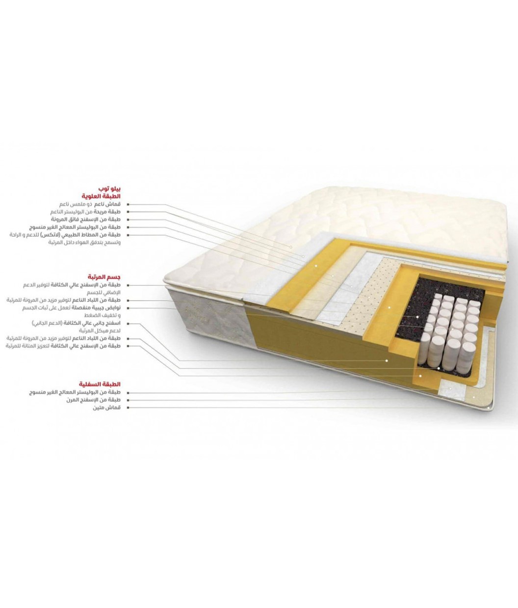 📌 ملاحظة: جميع المقاسات بالسنتيمتر وقد تختلف بنسبة ±1 سم تبعًا لتصميم المرتبة ونوع الحشو.